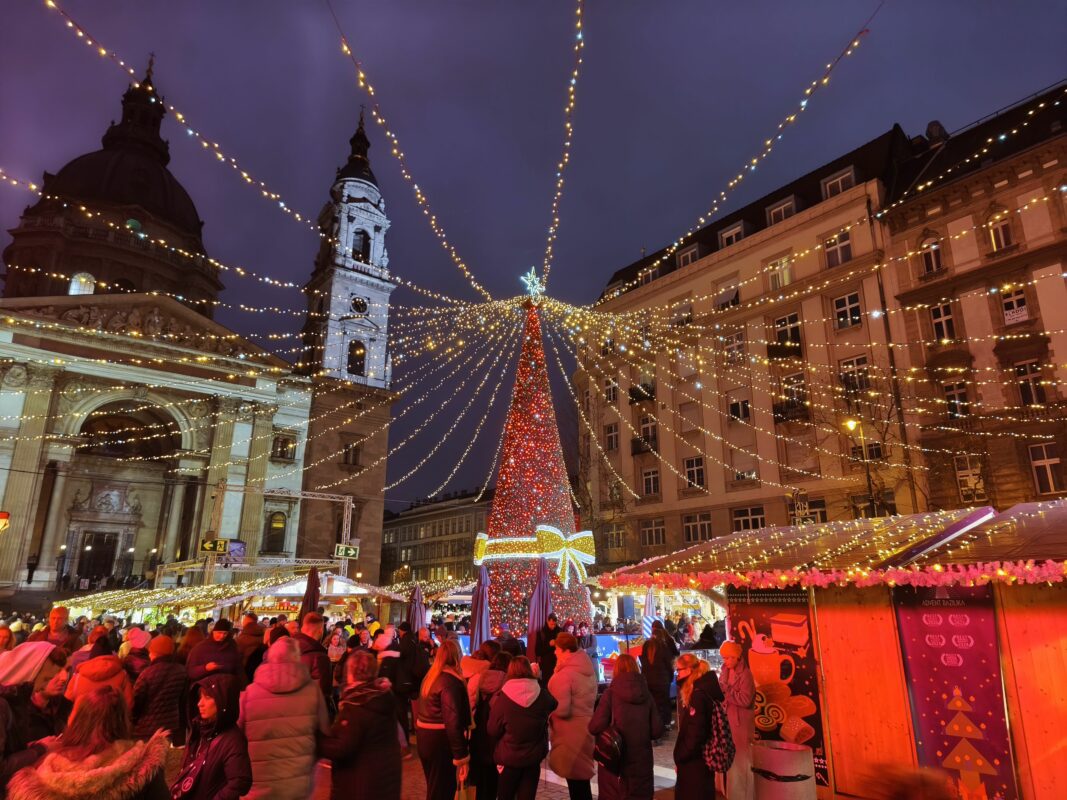Budapest i december er fuld af julestemning. Vi har besøgt byens to mest kendte julemarkeder – Vörösmarty-pladsen og julemarkedet foran Stefanskirken (St. Stephen’s Basilica) – og oplevelsen er præcis så hyggelig og stemningsfuld, som man håber på ved en vinterrejse til en europæisk storby. Overalt glimter lysene, duften af varm mad og krydderier fylder luften, og folk samles for at nyde tiden sammen.